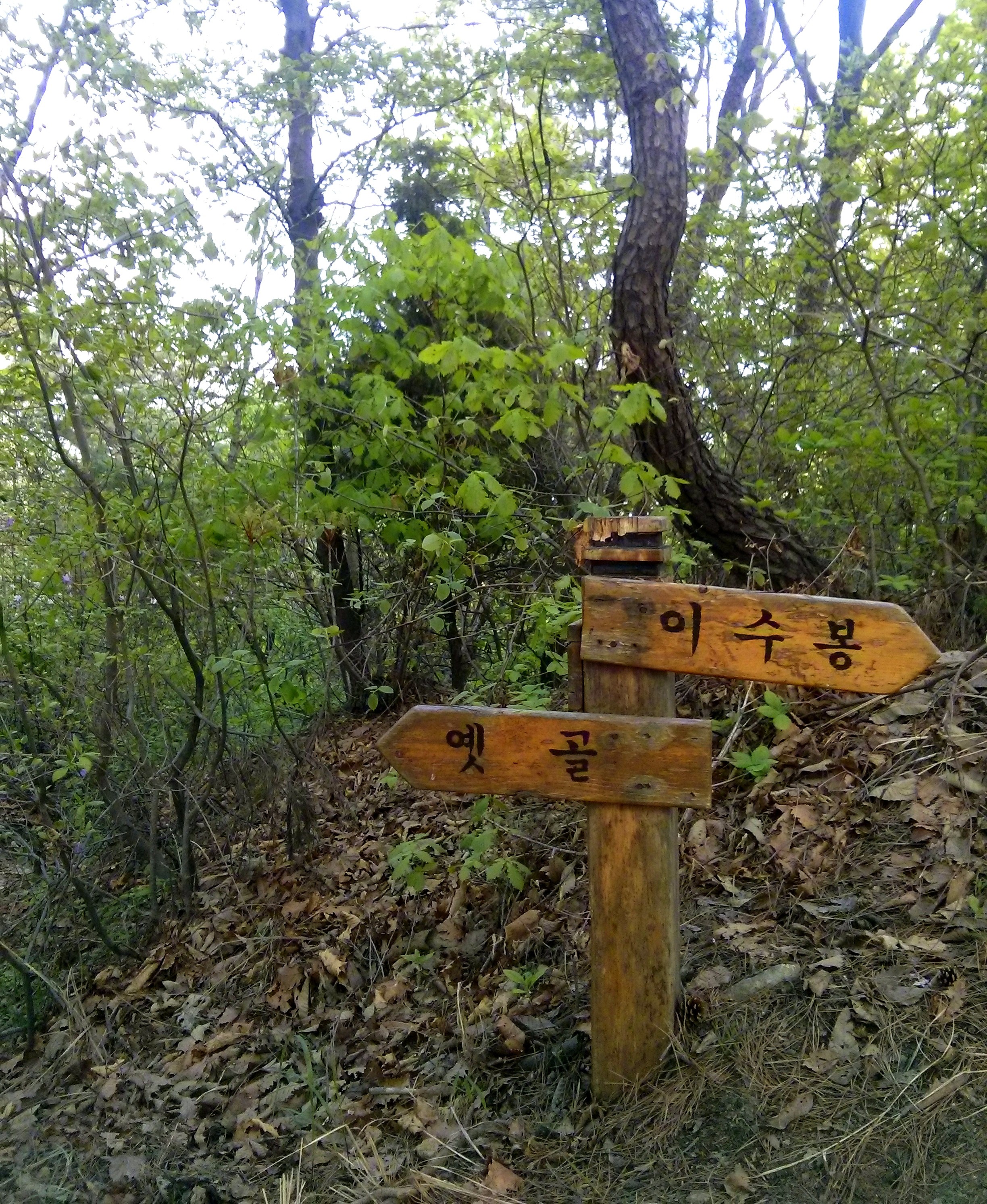 It seemed like a pretty simple question, but climbing it was only half the battle. Not that Alyx and I had been to many mountains before (I once went to up a cable lift to the top of Mt Stanserhorn in Switzerland), we thought it was a nice enough day for a little adventure up to a popular hiking destination. We would hike this mountain then come back and make a nice Easter dinner, since it was Easter Sunday. Cheonggyesan Mountain straddles the border between Seoul and Anyang, and is one of the taller mountains nearby at 500+ metres. It was well reviewed and we had plenty of online info to get us there. It wasn’t far away but taking a taxi there and back could have added up. So we relied on public transit once again (which is continually proving itself to be amazingly efficient here!). A shuttle bus ran hourly from a nearby subway station – this was our first time on the bus. Thankfully hikers in Korea cover themselves in hiking gear so it was easy to know if we were going the right way. Hikers here almost go over the top in preperation. Many of them have jackets, hats, sunglasses, sport pants, backpacks, and walking sticks. The picture below shows you the kind of signals we watched for to go the right direction. Oh how the hiker has become the trail marker. We looked like amateurs compared to most hikers we saw near the top of the mountain.