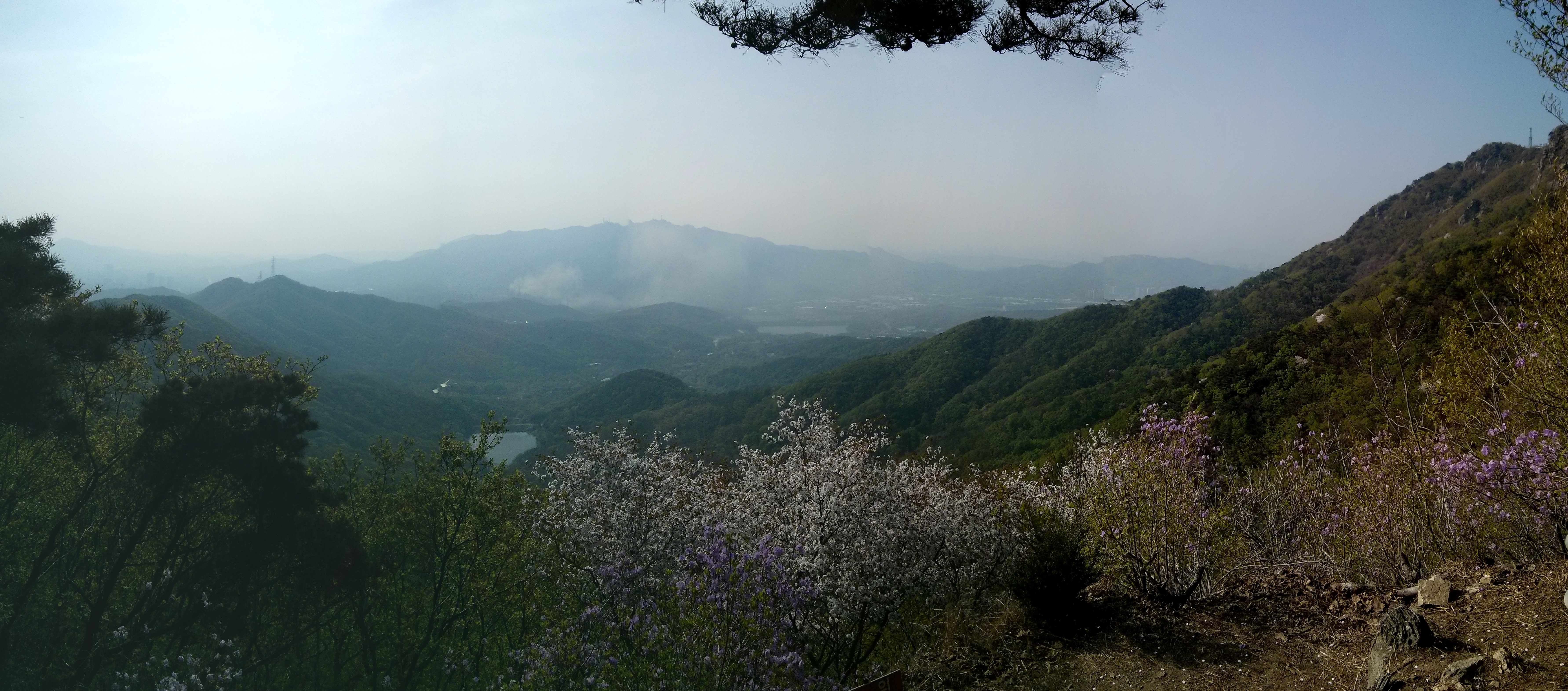This was well worth it though. Although a little hazy (as usual) we were treated with great views of the surrounding mountains and Seoul Land Theme Park. Here is a view we enjoyed form a lookout near the peak.